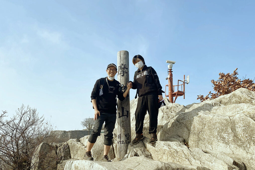 As we climbed, the landscape began to shift—the dense forest slowly opened up, revealing glimpses of the world beyond. On clear days, hikers are treated to breathtaking panoramic views of Ganghwa Island, the Yellow Sea, and even distant glimpses of Incheon and North Korea. But for us, the sky wore a heavy cloak of yellow dust, and the gloomy weather veiled the scenery in a thick, fog-like haze. We had hoped for a stunning vista on our first peak, but instead were met with a quiet, almost haunting atmosphere. Oddly enough, there was something poetic about it—conquering our first BAC summit under gray skies felt like a fitting metaphor for beginning this journey from a place of uncertainty and quiet resilience.