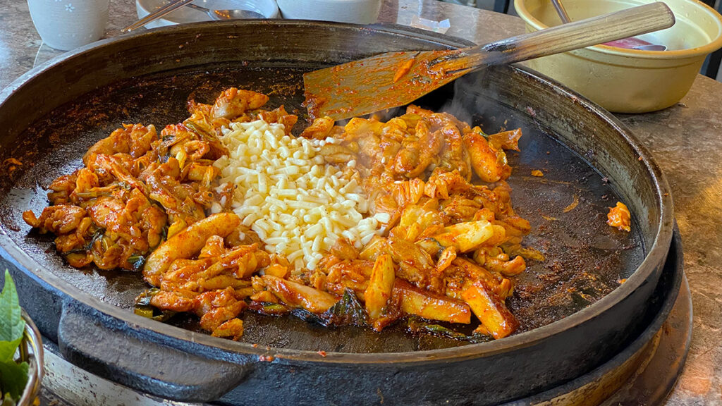 Recharging our energy at Myeongga Chuncheon Chicken Ribs restaurant. 명가춘천닭갈비막국수