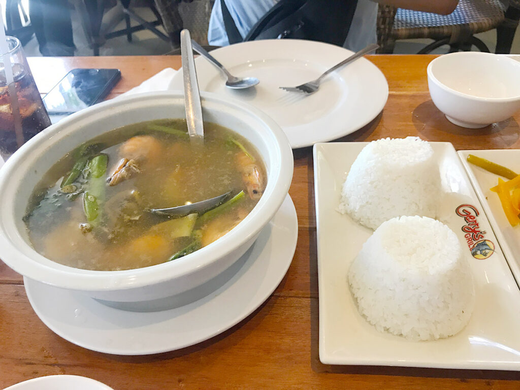 Sinigang na hipon for lunch, paired with pork belly and white rice.