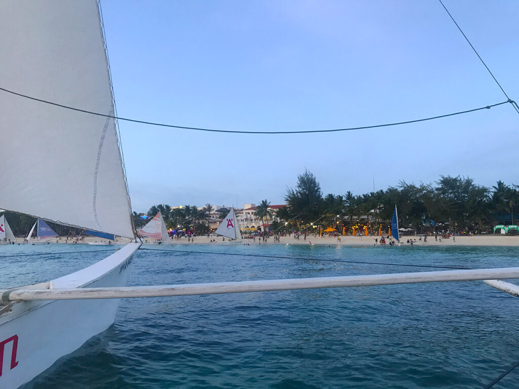 After the sail, we took advantage of the fading light to snap a few photos before heading back to our accommodation. As night fell, we freshened up and prepared to experience Boracay’s nightlife. The heart of the action is in Station 2, where the parties and fun never seem to end. But since we had an early schedule the next day, we decided to call it a night around 11 PM.