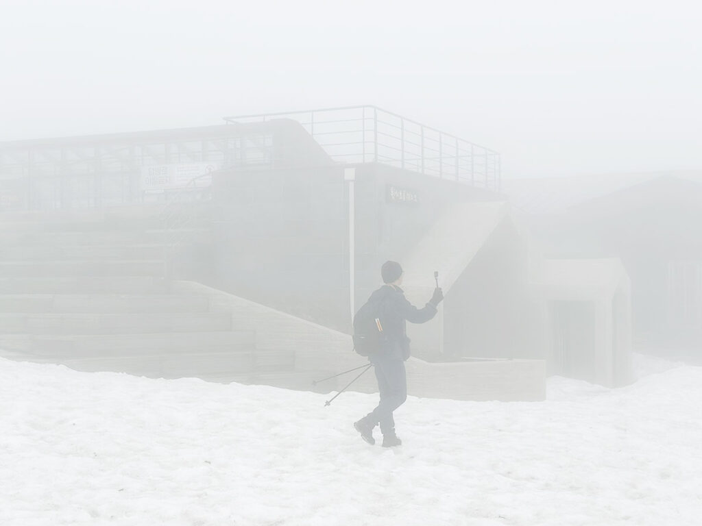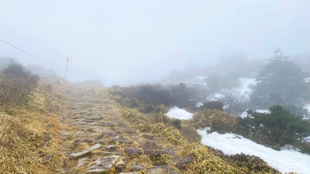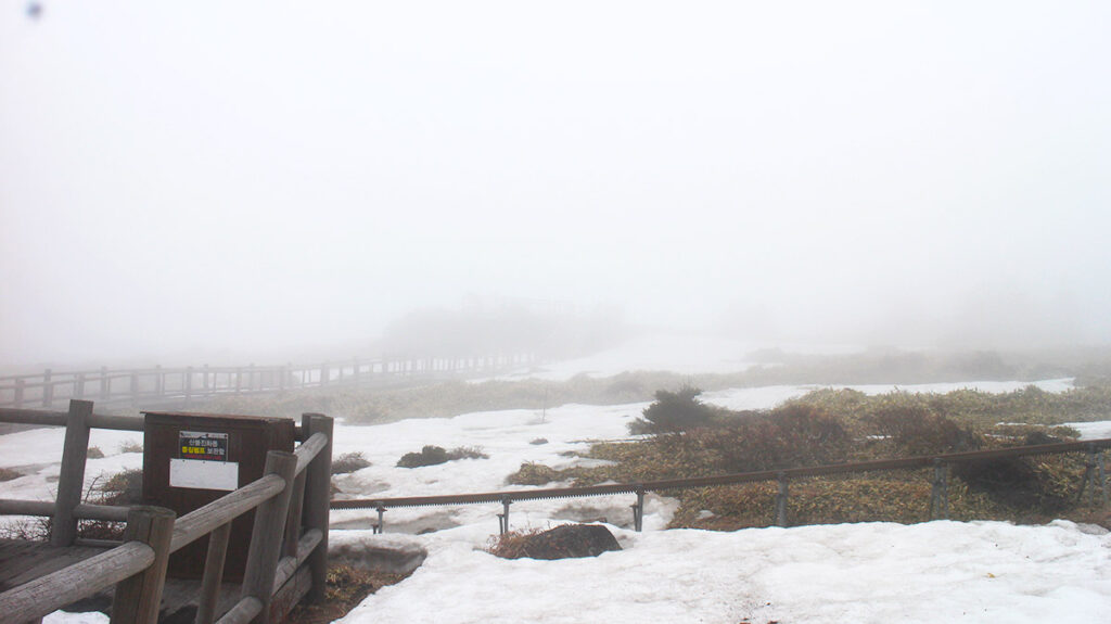 As we neared the Witse Oreum shelter (which is considered the main peak, though it’s not the actual summit), everything was completely whiteout. Other climbers appeared like ghosts, fading in and out of sight.