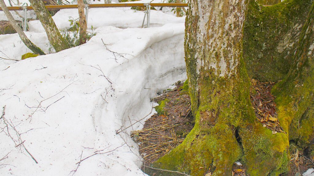 As the weather worsened, so did the temperature, marking the arrival of spring. The once beautiful blanket of snow began to melt into a slushy mix of ice and mud. On our third climb, we noticed something striking—the entrance to the trail had no snow at all. Instead, we were met with decaying autumn leaves, and the mud from the melting snow clung to our shoes like sludge. It felt dirty, and honestly, so did we. There was a sense of sadness as we continued the climb, realizing that winter had come to an end and our goal was slipping away.