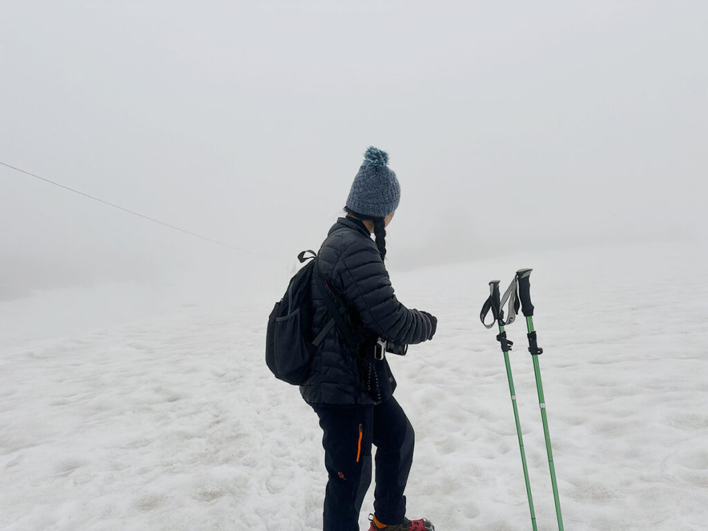 That day, the fog was so thick it felt like we were walking into the unknown. As we climbed higher, everything turned completely white. The only thing we could see were the red flags marking the trail. But what struck us the most was the fact that, despite the terrible weather, a few other climbers were still pushing forward. We thought back to our BAC 100 challenges, where we’d encountered similar conditions. That memory helped us shift our mindset.