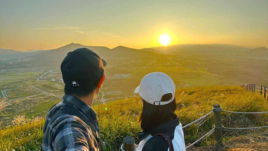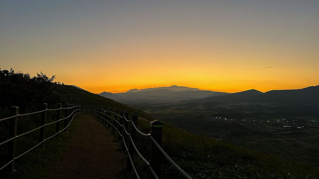 Traveling during Chuseok can be challenging. The roads are crowded, popular attractions are packed, and finding a quiet spot is nearly impossible. That’s why we started our day at dawn, making our way to Saebyeol Oreum, a volcanic hill known for its scenic hiking trails and stunning sunrise views.