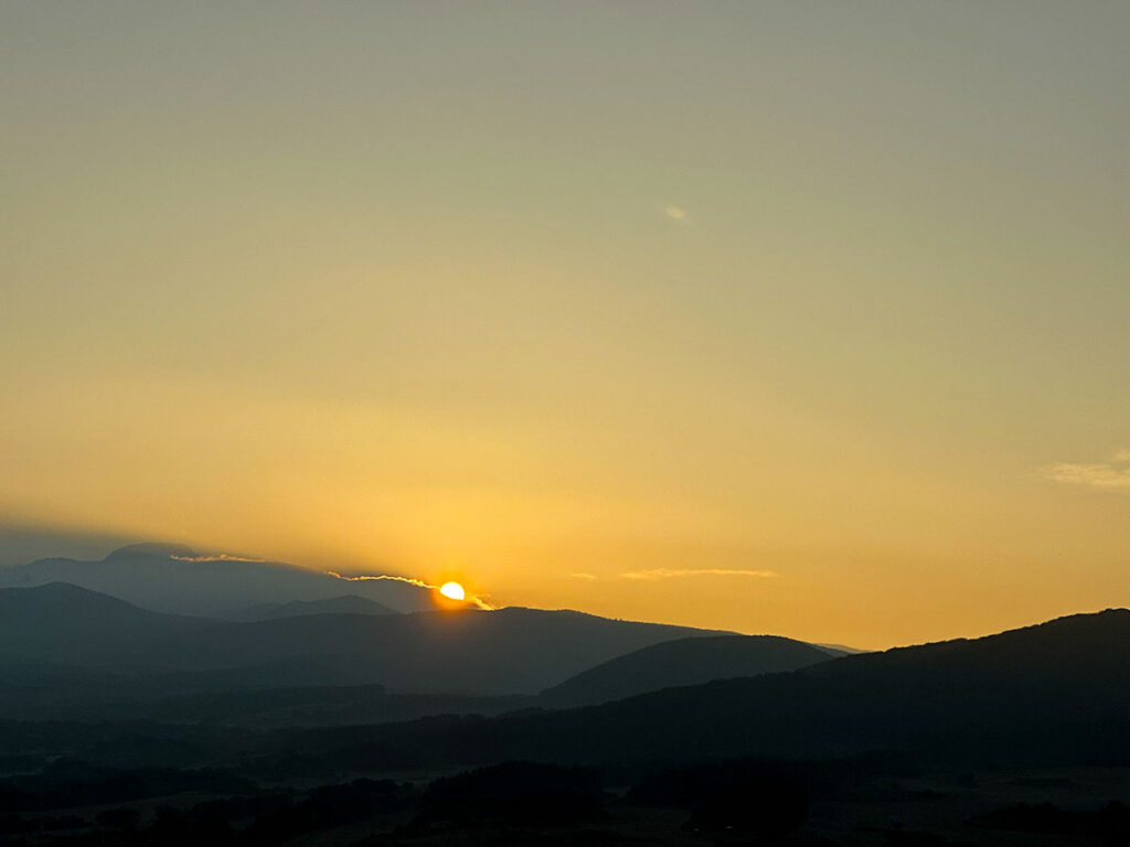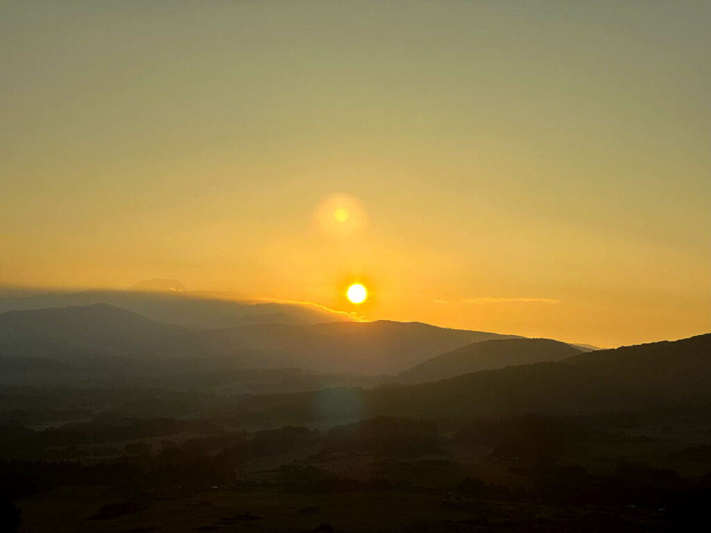 We made a funny mistake. The sun actually rises over the sea first, so from the mountain’s peak, it didn’t appear until 6:51 AM. Technically, we didn’t need to rush up the trail, but having that extra time let us find a great spot and set up our cameras perfectly for the best shot. We waited a little longer for the sun to appear, and it was absolutely worth it.